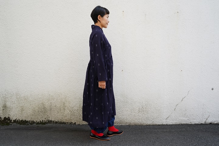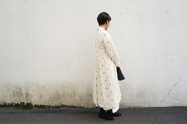 少し立ち上がった後ろ衿もきれいなデザインです。