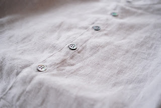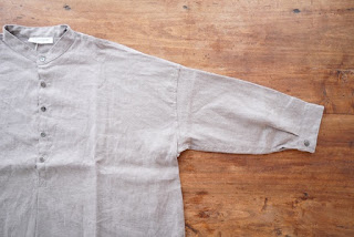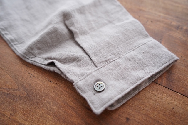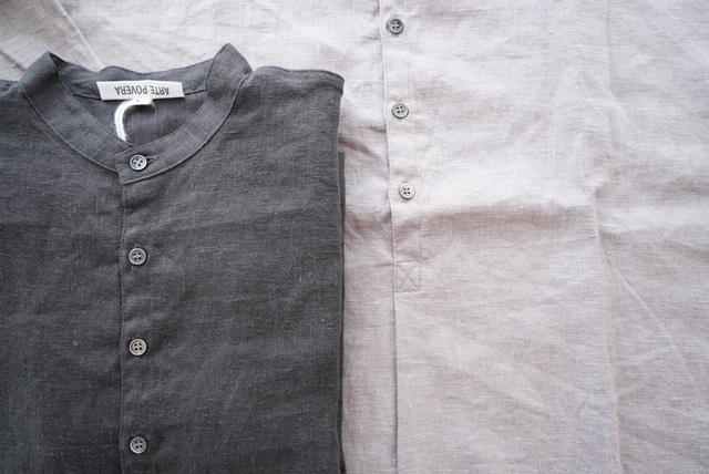 リネン平織り起毛バンドカラーシャツ