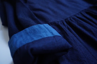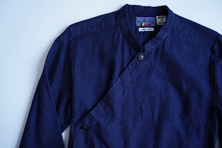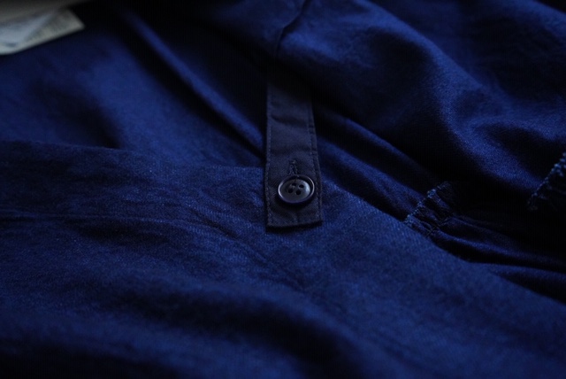 袖口や身頃の見返しが藍染の濃淡で切り返しになっています。