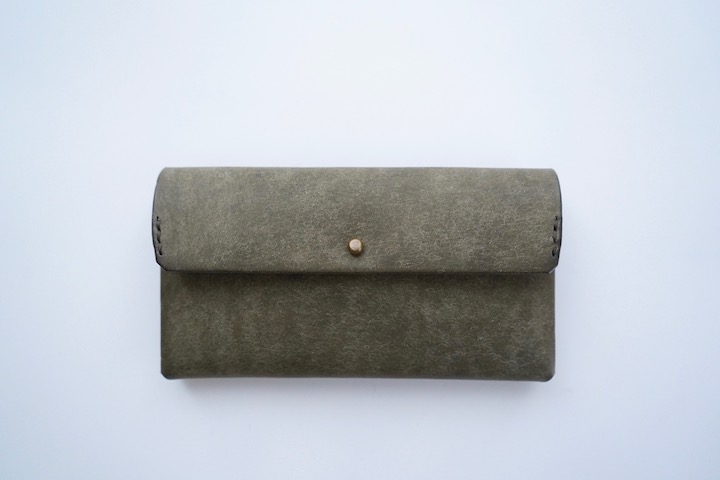 こちらは通常のミニ長財布の革よりも少しだけ硬さのあるものを