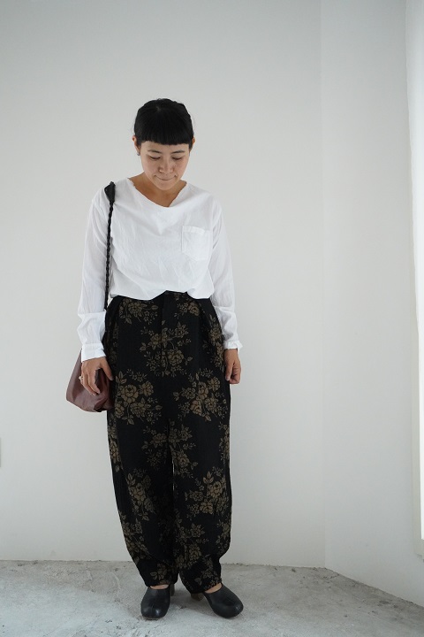 印象的なパンツの柄やシルエットに負けないデザインです。