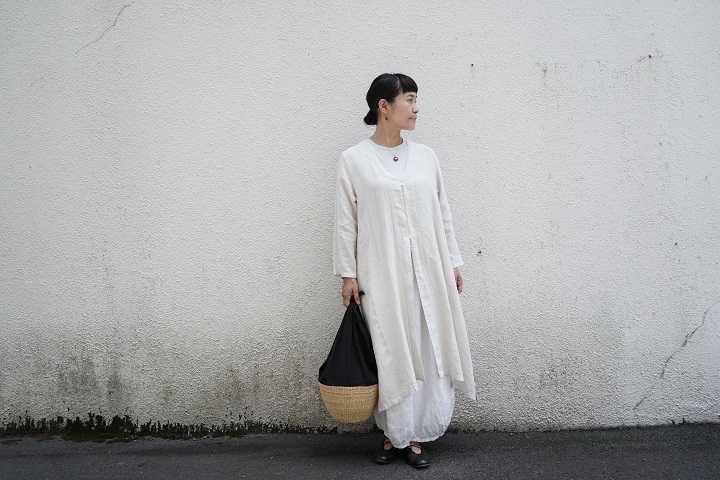 品の良い2つ穴の貝釦は、evam evaらしい。
