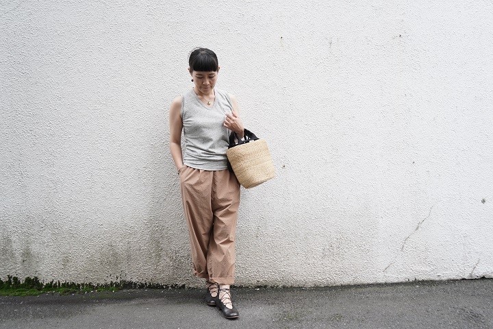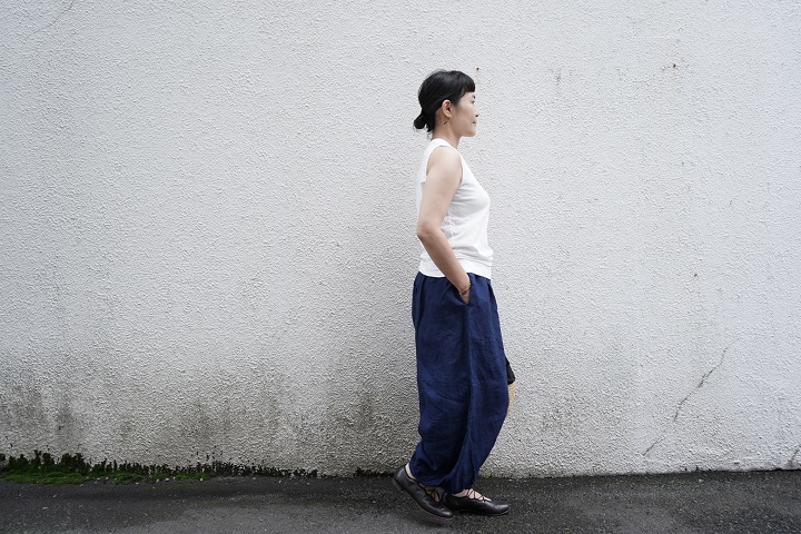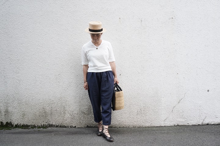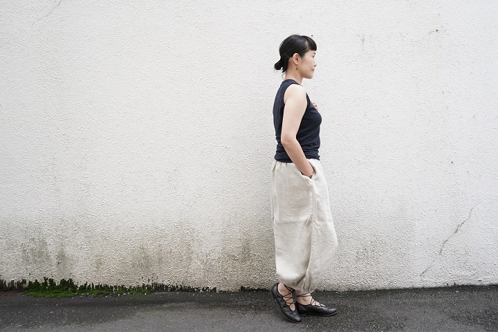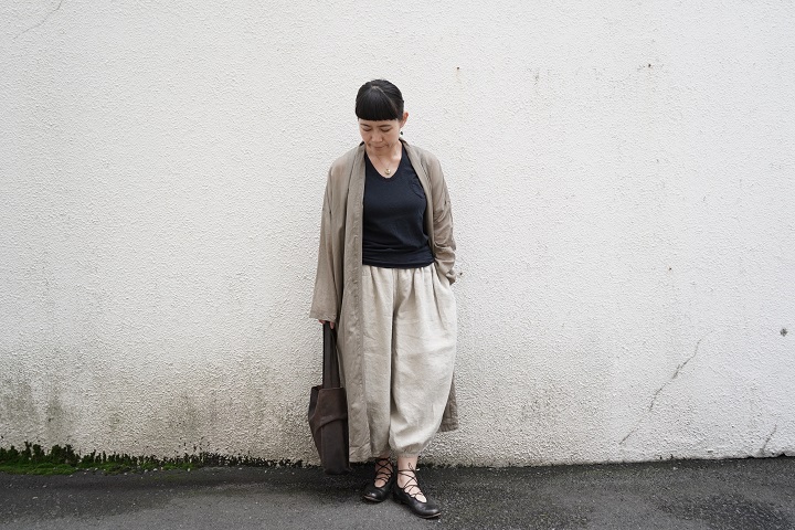 TRAVAIL MANUELの定番パンツ、リネンサドルパンツに合わせて。
