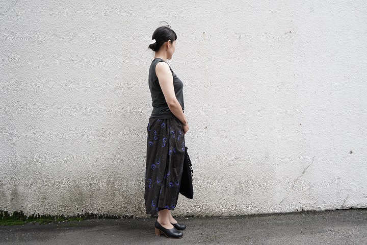 この生地を使用したシリーズは、裾を切り替えたデザインにしています。