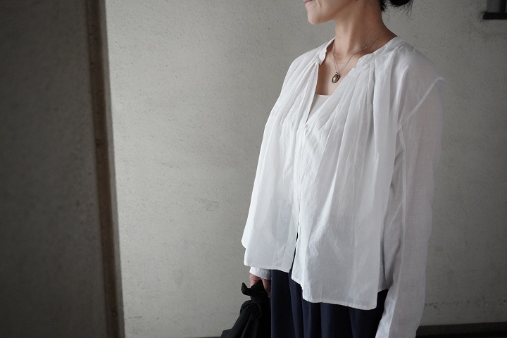 ライトカディコットンを用いた、ブランドの定番ブラウスです。