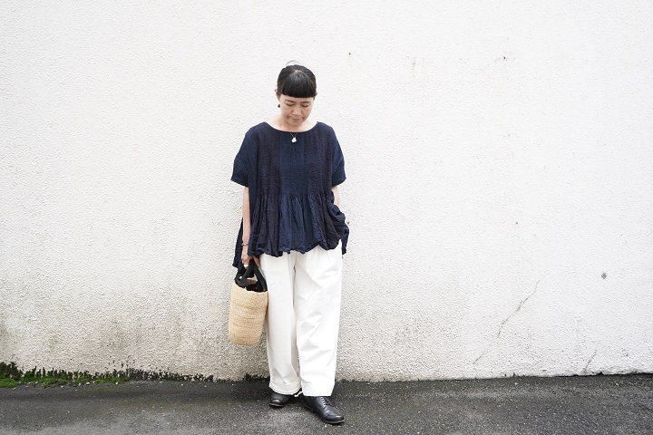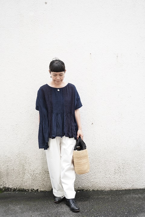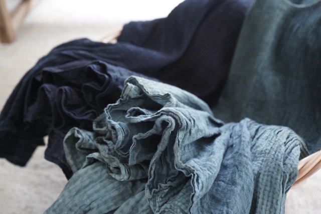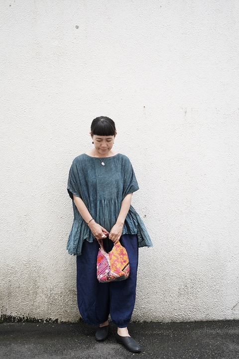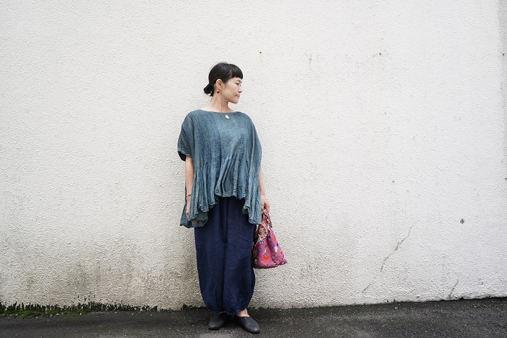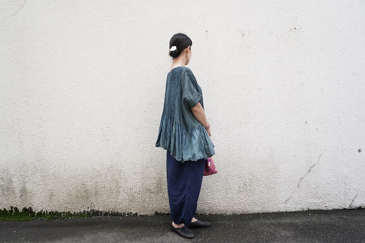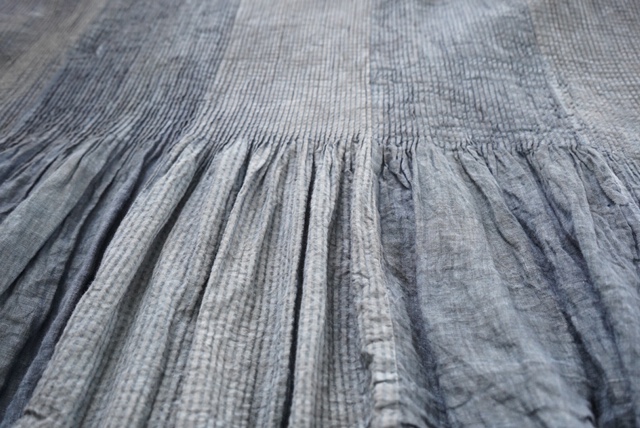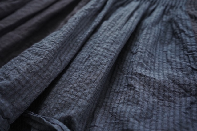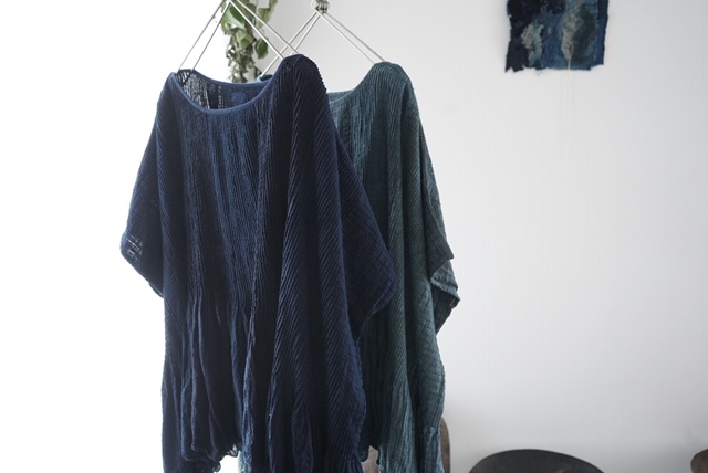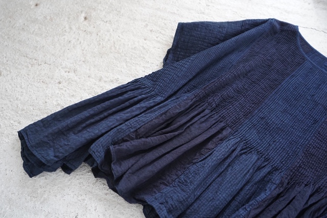 ピンタックを施し、さらに天然染料を手染めで仕上げることで