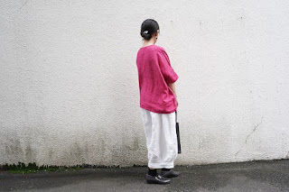 こちらはちょっとキレイめに、evam eva のリネンの羽織。