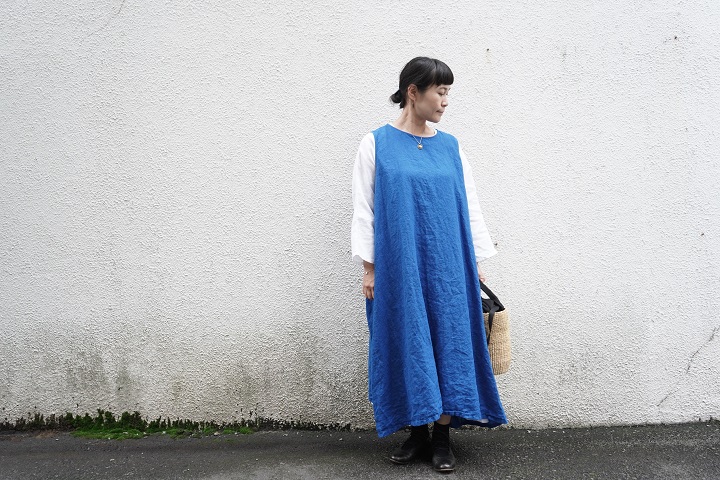 麻素材の素朴さと、インディゴではその染色が光ります。