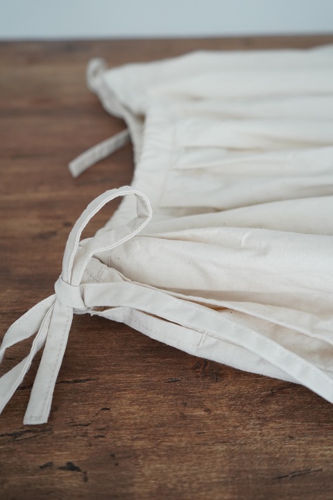巾着袋をシュッと締めるかのようにウェストを絞って結わく。