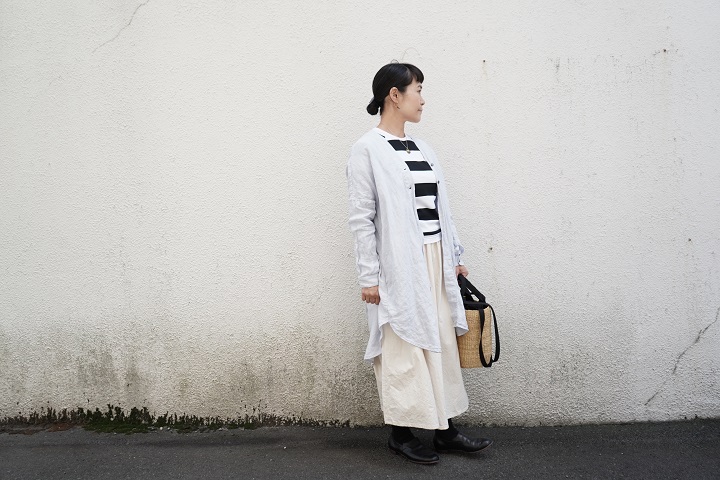 上からHonneteのシャツカーデを羽織ったら、