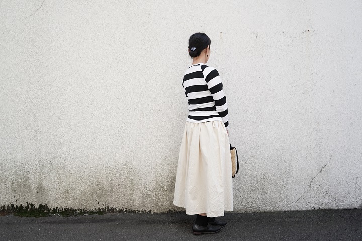 ただ、着た時の印象はとてもすっきりとしたスカートです。