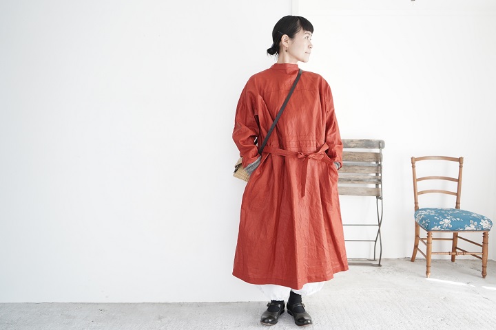 その上から後ろの釦をすべて外して、ヒモだけ結わく。
