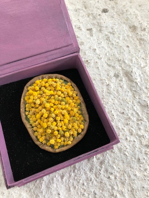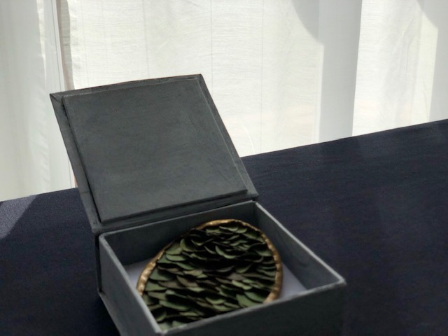 「ユーカリの葉」を敷き詰めたブローチとなります。
