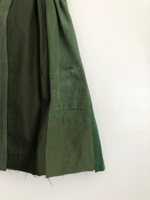 ミリタリー古着を解体してリメイクしたスカートは、