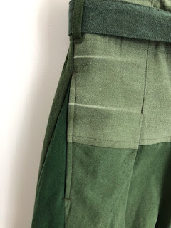 ミリタリーパンツを解体して継ぎ合わせ、