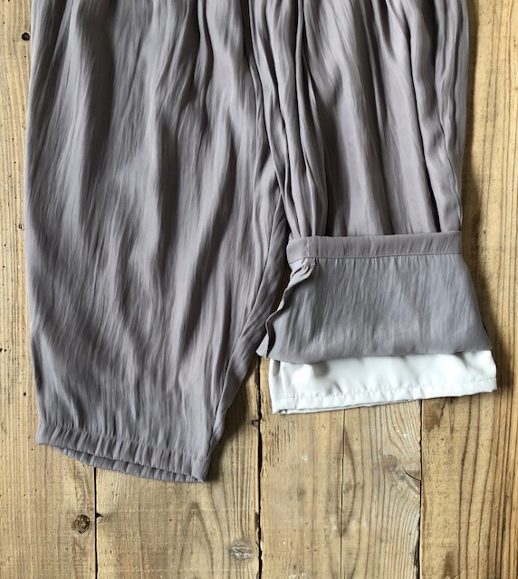 割繊ポリエステルギャザーワイドパンツ