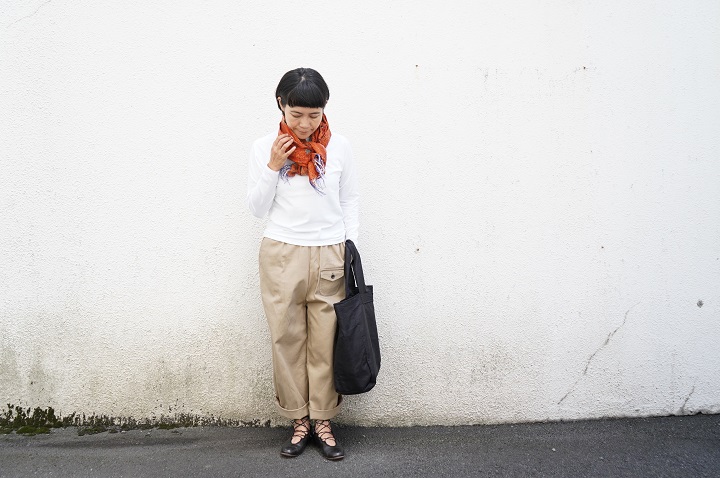 残暑厳しい秋ですが、綿パンに長袖Teeで、