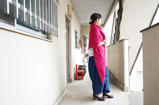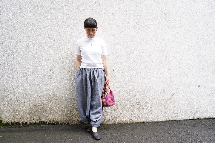 裾のゴムをひざ下まで上げるとバルーンキュロットの
