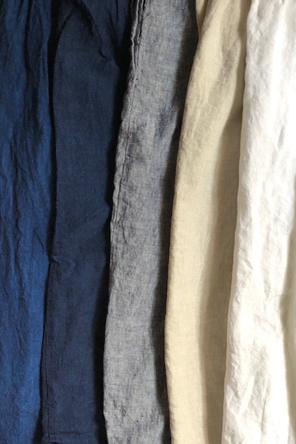 左から、インディゴ、ダークインディゴ、ブルーシャンブレー、