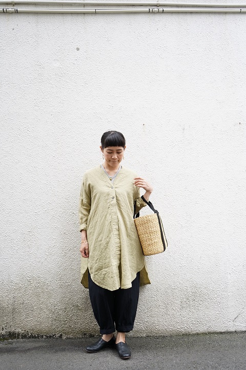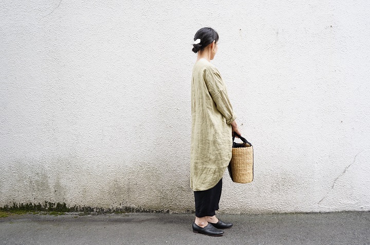 裾にボリュームのあるロングシャツを