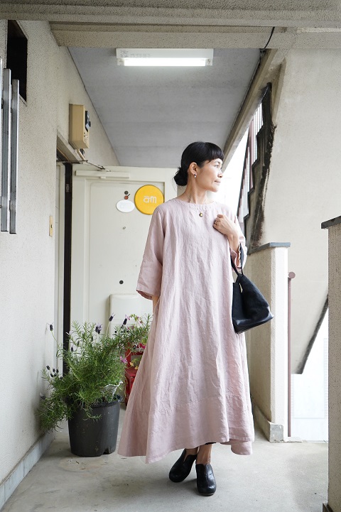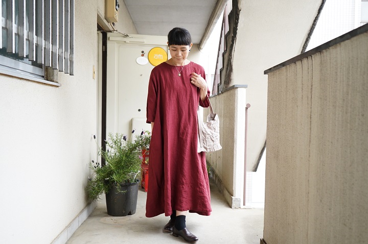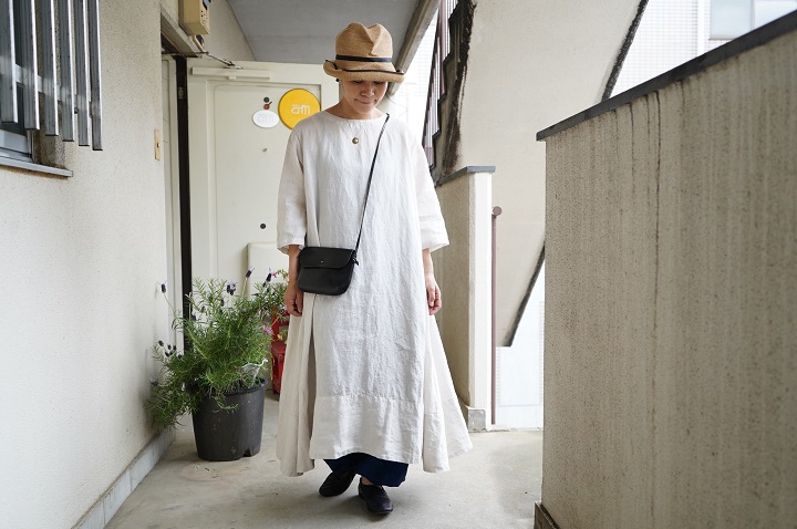 リラックスしたリネンワンピースの雰囲気に、