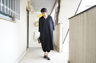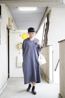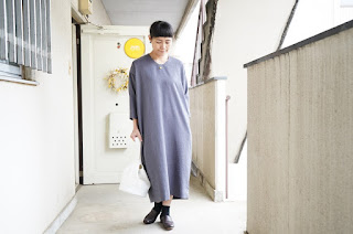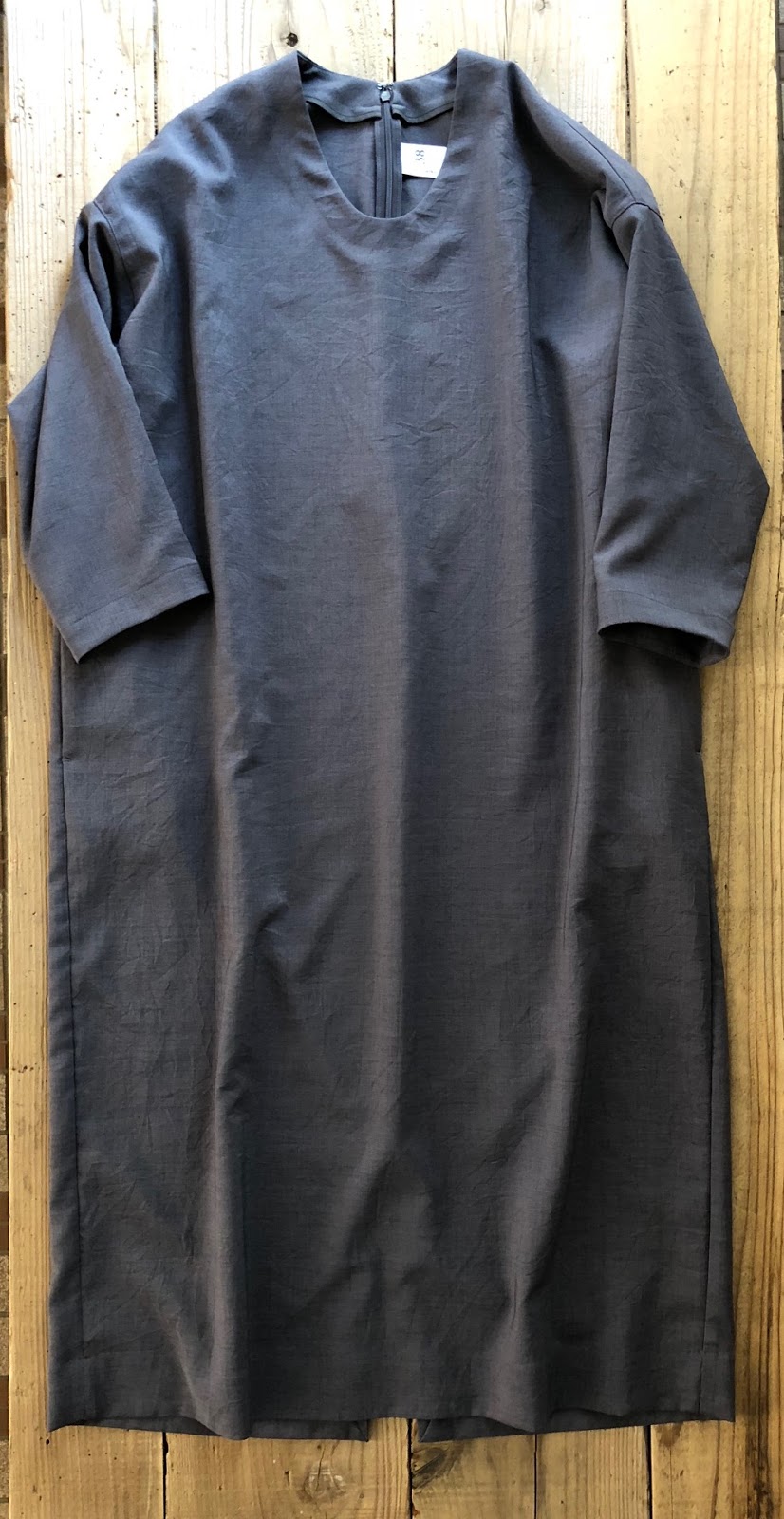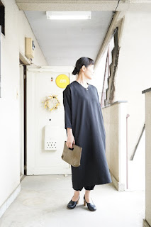 Uネックの定番ワンピースの着丈を長くしたもの。