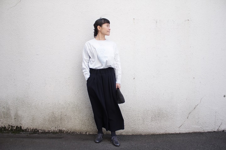 ワイドキュロットパンツに合わせて。