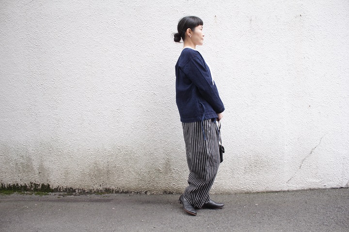 一見、作務衣(さむえ)の様にも見えるデザインですが、
