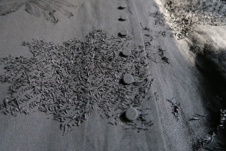 細やかなこのデザインは、袖口と裾にも施される。