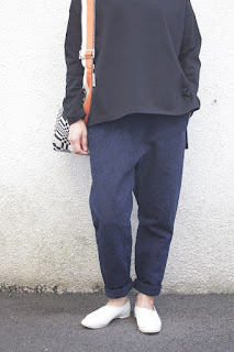 おしりは少しふくらみが出るけど、サルエルのように、